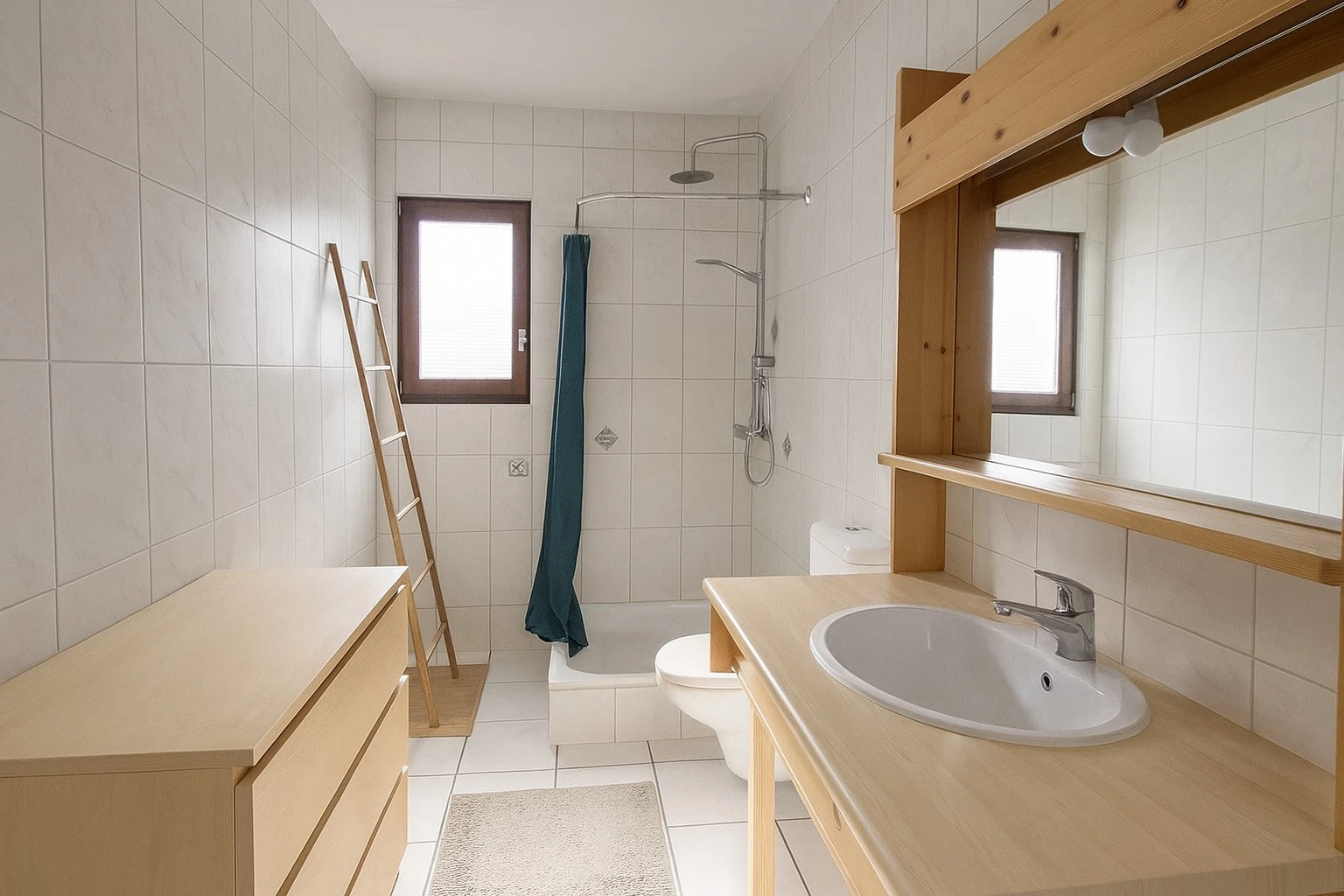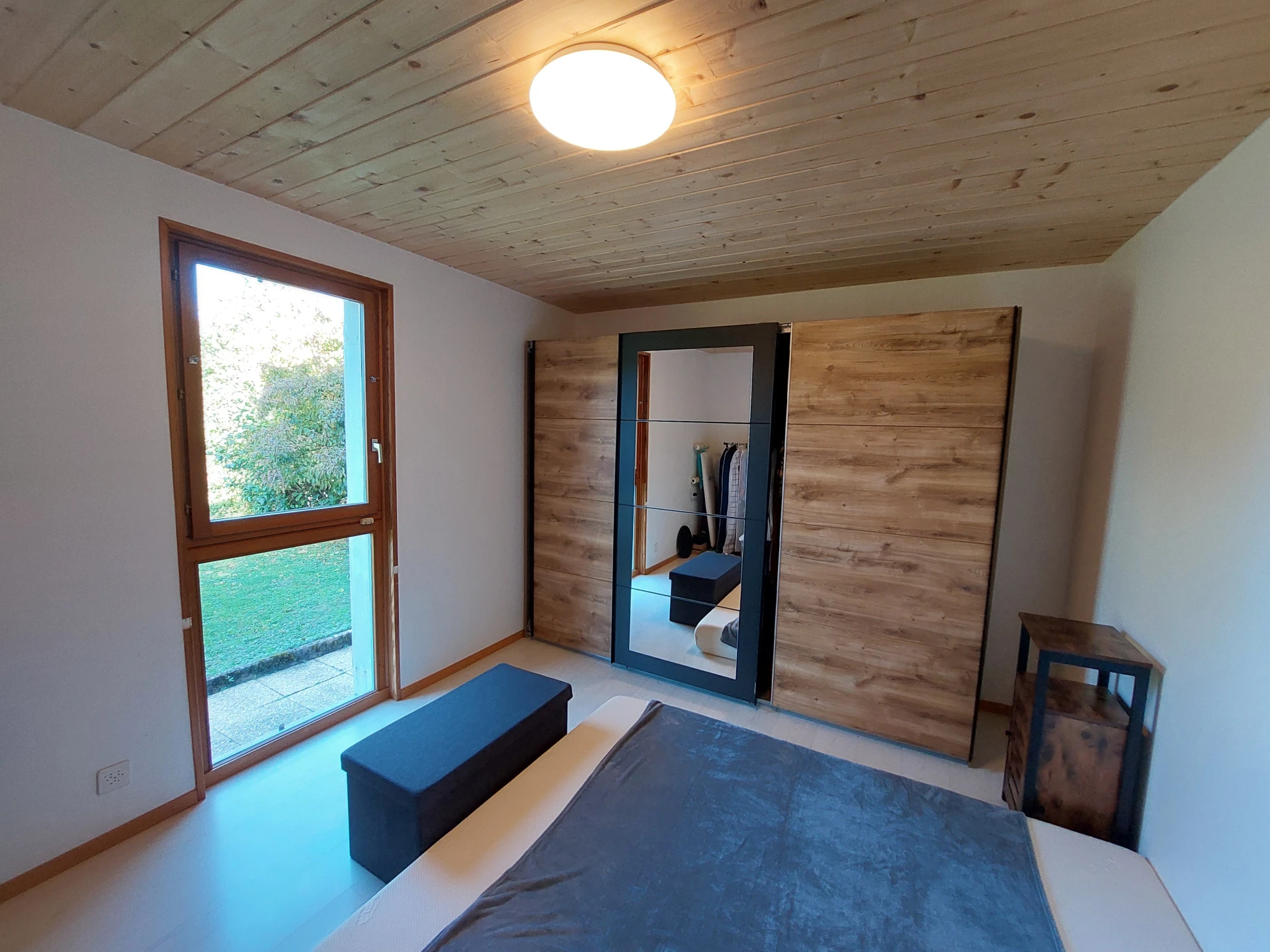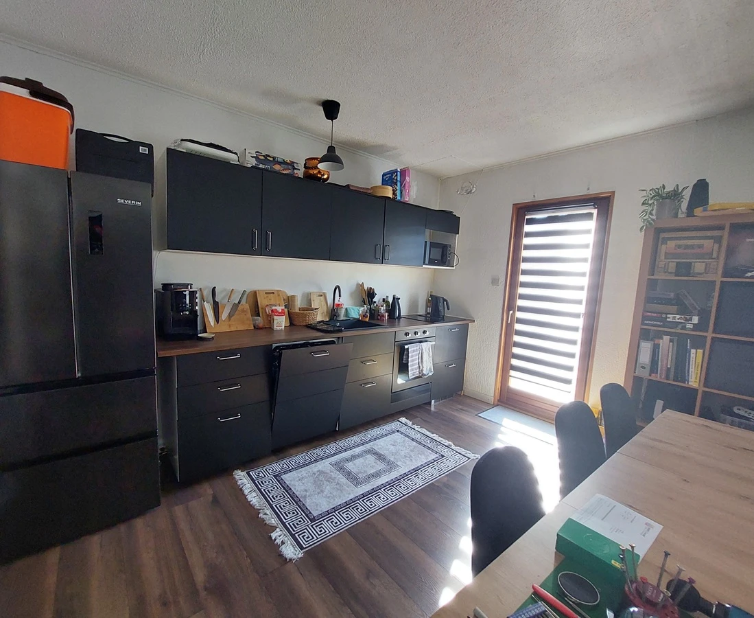 Le rez inférieur accueille un appartement de 3,5 pièces avec une entrée indépendante et accès au jardin. Il comporte un salon avec la possibilité d’y installer une cheminée, une cuisine ouverte, une salle de bain équipée d’une douche, un lavabo et un WC ainsi que deux chambres confortables.