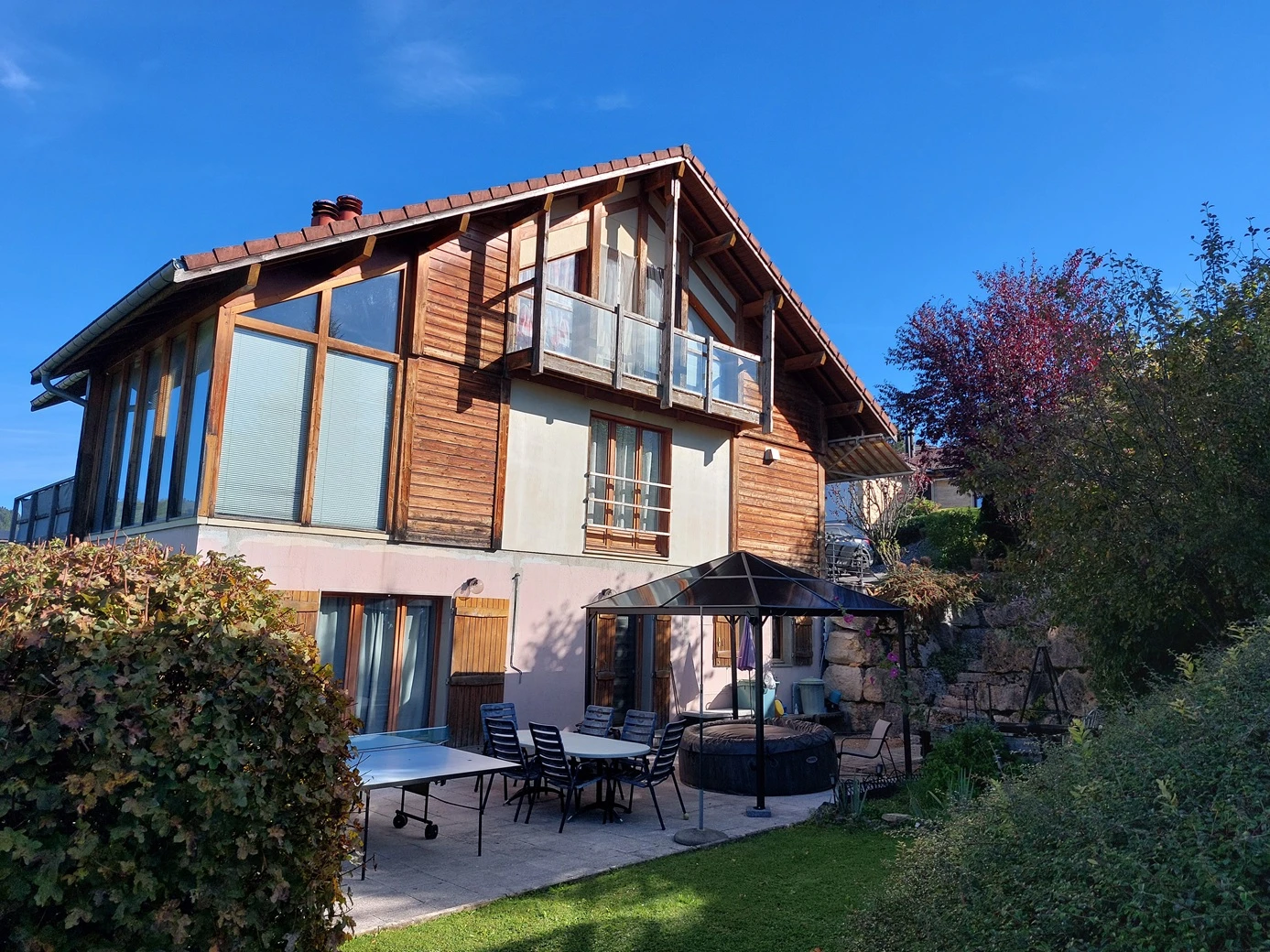 Érigée en 1994 sur une généreuse parcelle de 1'084 m², cette belle propriété d’environ 274 m² de surface brute offre un cadre de vie paisible, lumineux et particulièrement agréable. Elle bénéficie d’une vue dégagée sur les paysages environnants et sur le Doubs. Grâce à son orientation idéale, l’ensoleillement est optimal tout au long de la journée.