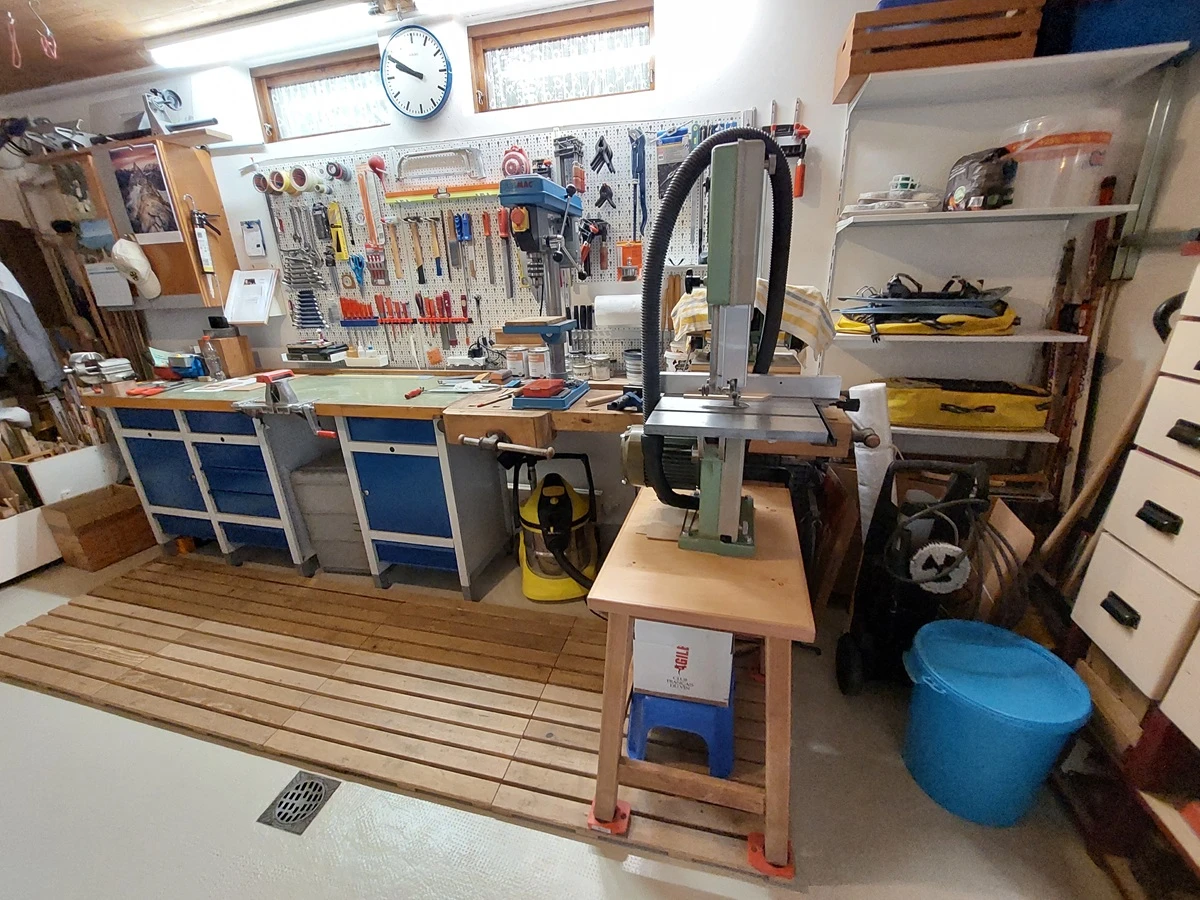Le niveau inférieur, disposant de sa propre entrée, comporte au sud une grande chambre d’environ 20 m² et une seconde chambre de 23 m², avec une salle de bain dotée d'une douche, lavabo et un WC. Au nord se trouvent une cave, un abri, plusieurs espaces de rangement, un atelier ainsi qu’une buanderie.